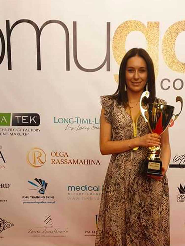 Kosmetolog, linergistka oraz licencjonowana, międzynarodowa trenerka PMU. Międzynarodowa Mistrzyni Makijażu Permanentnego w kategorii Master Brows PMU Gold 2019 oraz reprezentantka Polski na Mistrzostwach Świata PMU International Beauty Voyage. Od wielu lat wykonuję makijaż permanentny oraz prowadzę szkolenia ze swoich autorskiej technik pigmentacji Powder&Ombre Brows. Zostałam odznoczona wieloma cennymi wyróżnieniami za jakość pracy oraz poziom prac moich kursantek, między innymi AIPMUA, Pro Teacher czy AcademyS by Sviatoslav Otchenash.