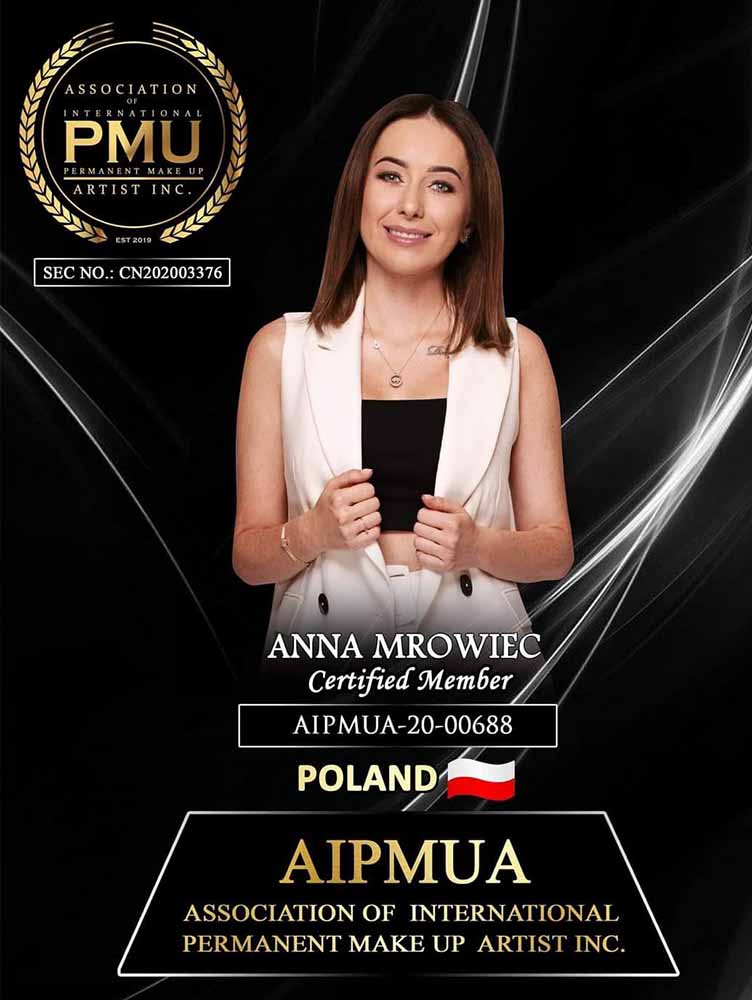 Tytuł AIPMUA. Międzynarodowe Stowarzyszenie Permanent Make Up Artist. AIPMUA ma na celu zgromadzenie wszystkich najlepszych artystów PMU na świecie.